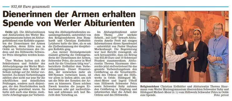 "Jemand hat einmal die Arbeit der Schwestern als "lautlose Predigt" bezeichnet."
