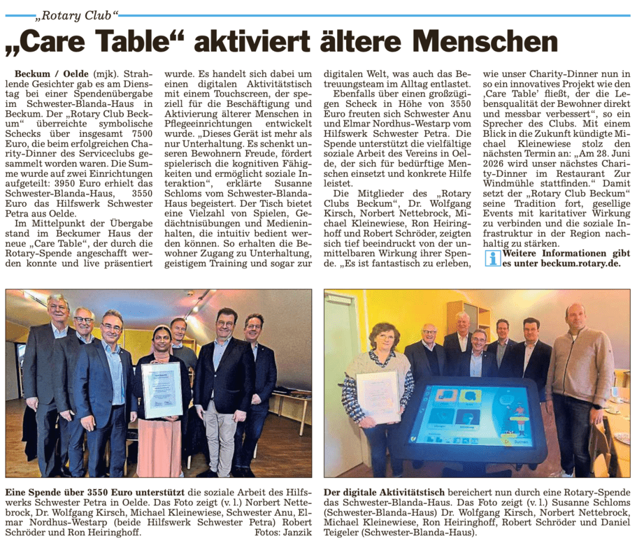 Während die Gesamtschülerinnen bereits im Religionsunterricht vom Wirken der Oelderin und von der Entwicklung des 1969 gegründeten Ordens Dinasevanasabha erfahren hatten, hörten viele der Auszubildenden erstmalig von Schwester Petra und dem Orden, der heute aus mehr als 600 Schwestern in über 90 Konventen in Indien besteht. Auch in Deutschland sind über 30 Schwestern des Ordens in der Alten- und Krankenpflege tätig. Die daraus erzielten Einnahmen gehen fast komplett nach Indien und stellen neben den Spenden über das Hilfswerk die wichtigste Unterstützung für die Arbeit des Ordens dar, vor allem, nachdem der indische Staat mehr und mehr seine Förderungen zurückfährt.