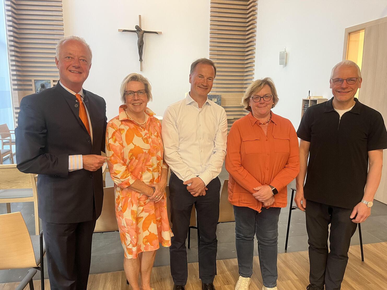 Ansprechpartner in unserem Büro in Oelde sind Hildegard Micheel-Meier, eine Verwandte von Schwester Petra (3. v. l.). Ingrid Uthoff (l.) und Ursula Schlief (Mitte) ergänzen das Team. Clemens Schniederkötter (r.) ist für die Buchhaltung verantwortlich.